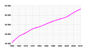 ![]() Evolución de la población del país entre 1960 y 2003, en miles de habitantes. | |||